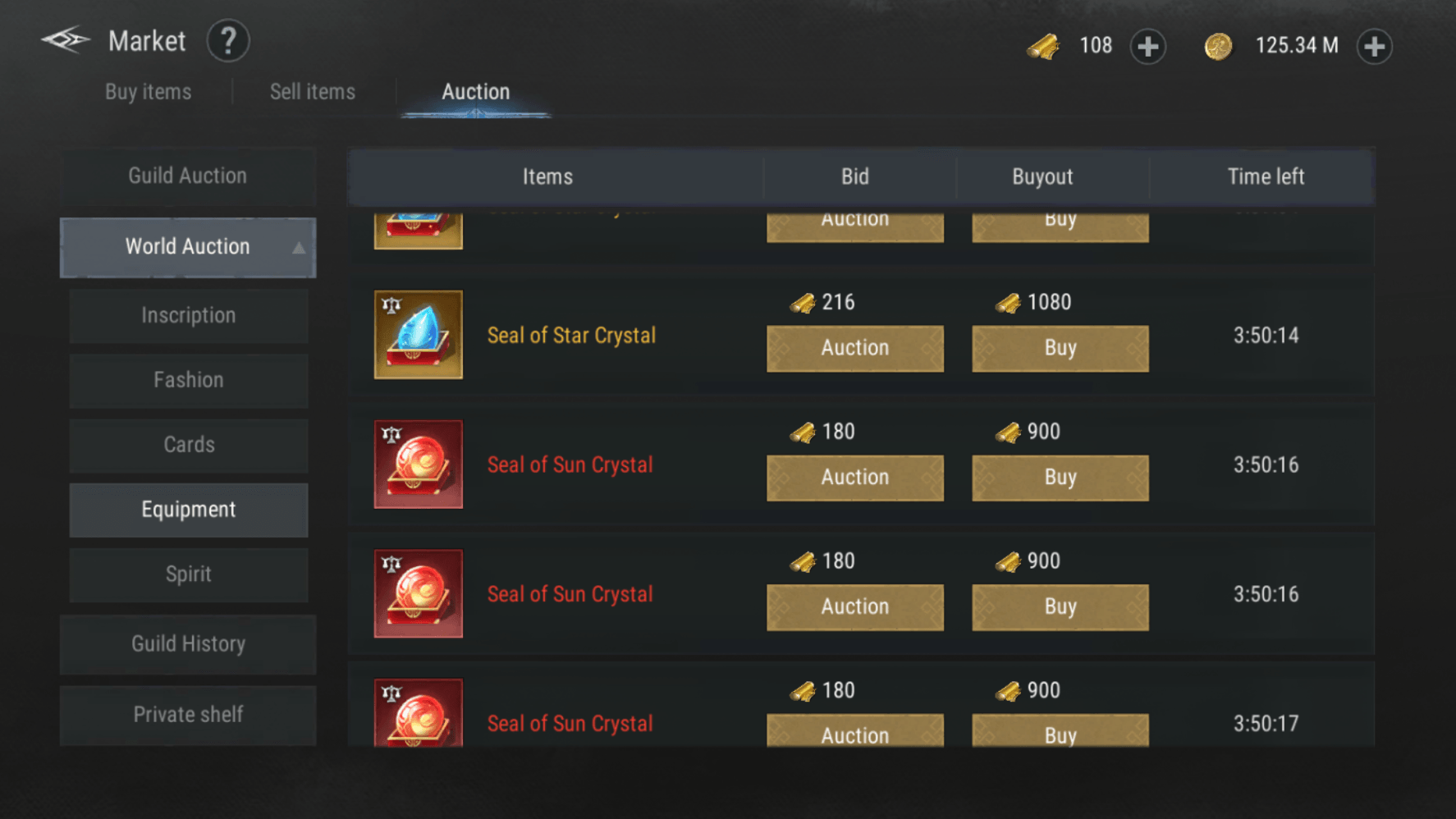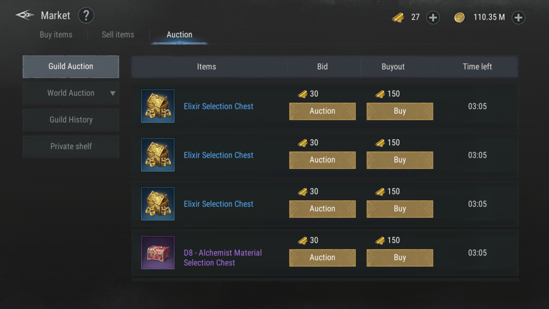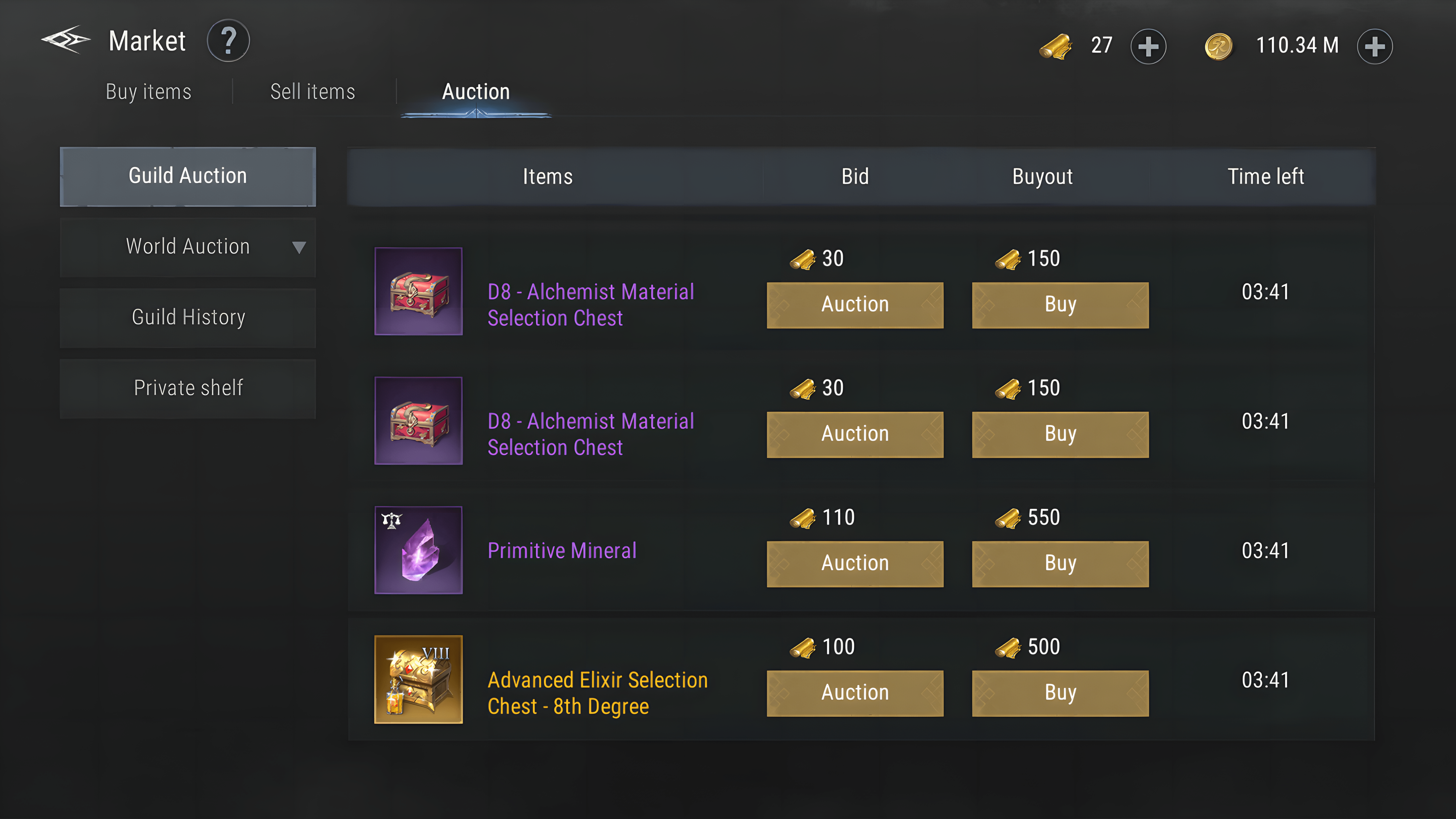 كل عنصر في مزاد العالم سيكون له وقت مزاد مدته 240 دقيقة