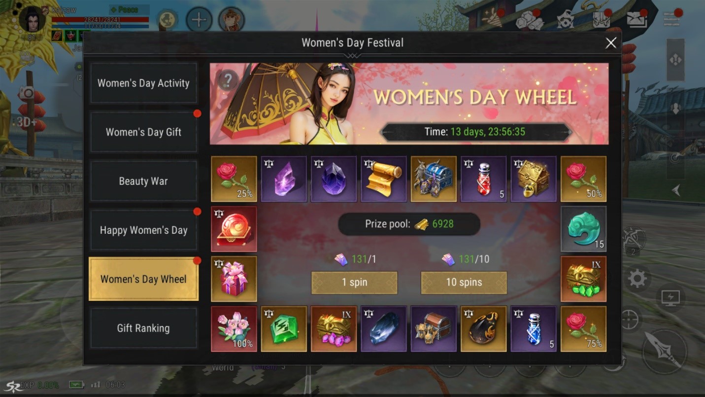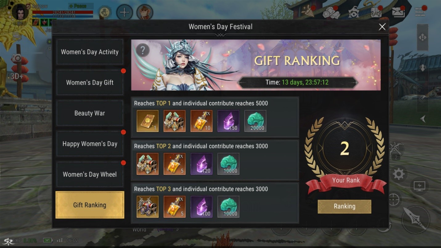 📝 المهام الخاصة: خلال الحدث، سيحصل اللاعبون على قائمة مهام (Quests) لإكمالها. عند إنهاء كل مهمة، سيتم منحهم بطاقة يوم المرأة (Women’s Day Card) 🎟️ كمكافأة!